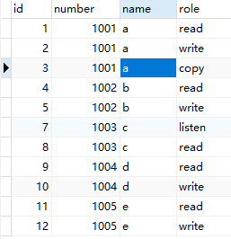 14.一个用户具有多个角色,请查询出该表中具有该用户的所有角色的其他用户(比如 a 用户)。