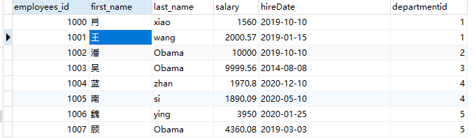 (1)基于上述EMPLOYEES表写出查询:写出雇用日期在今年的,或者工资在[1000,2000]之间的,或者员工姓名(last_name)以’Obama’打头的所有员工,列出这些员工的全部个人信息。