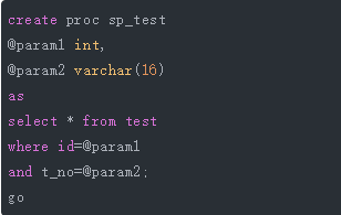 create proc | procedure procedure_name [{@参数数据类型} [=默认值] [output], {@参数数据类型} [=默认值] [output], .... ] as SQL_statements go