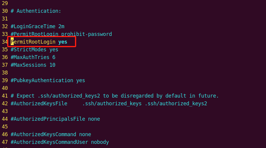 允许root登录选项打开,vim /etc/ssh/sshd_config