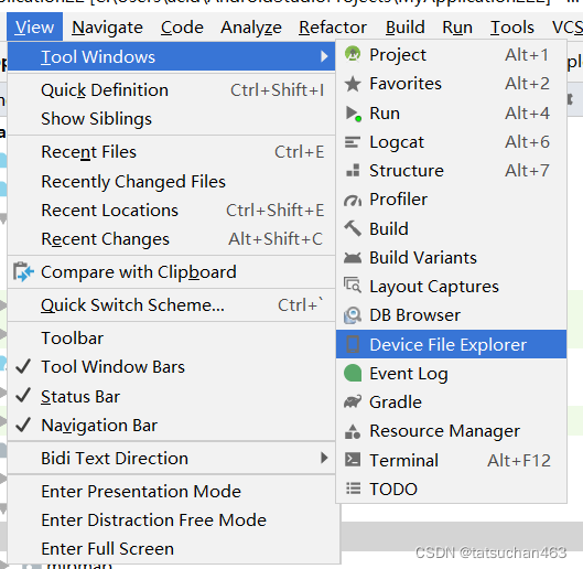 3.运行模拟机,在菜单栏找到Device File Explorer选项(在此期间模拟机不要关)。