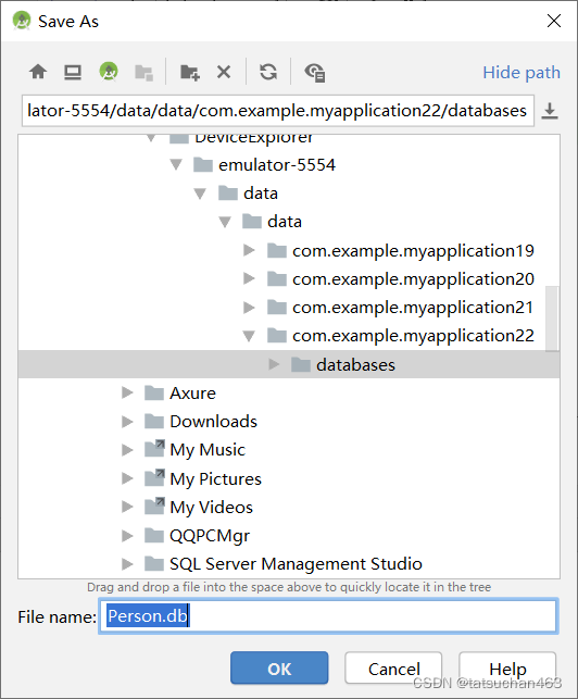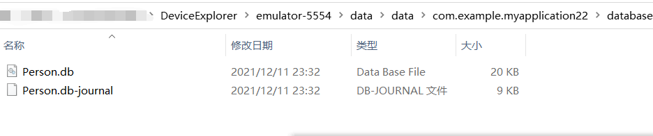 4.右方出现界面,找到/data/data/com.example.myapplication22/databases/Person.db