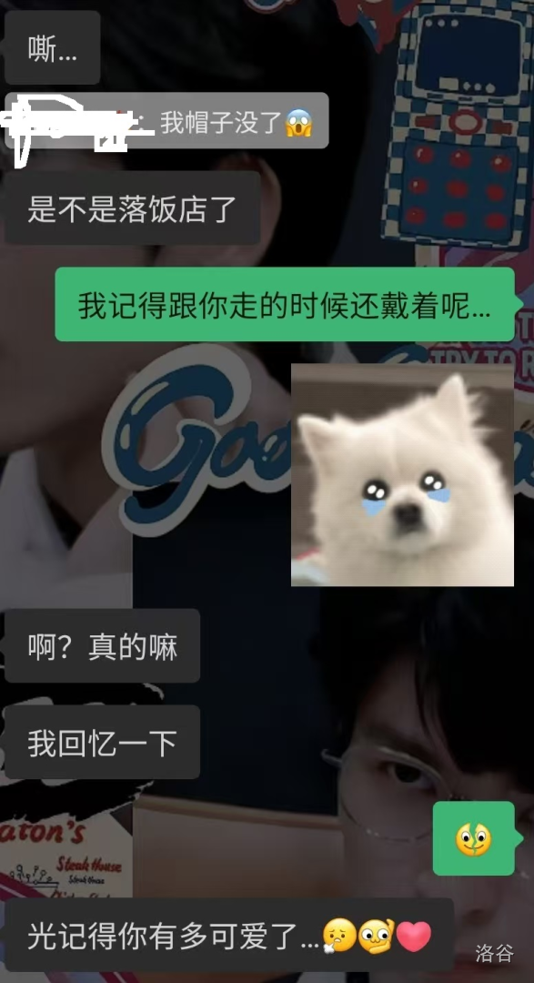 此时 G1 告诉我们她找不到帽子了,问我们记不记得丢哪了?然后传来如下聊天记录: