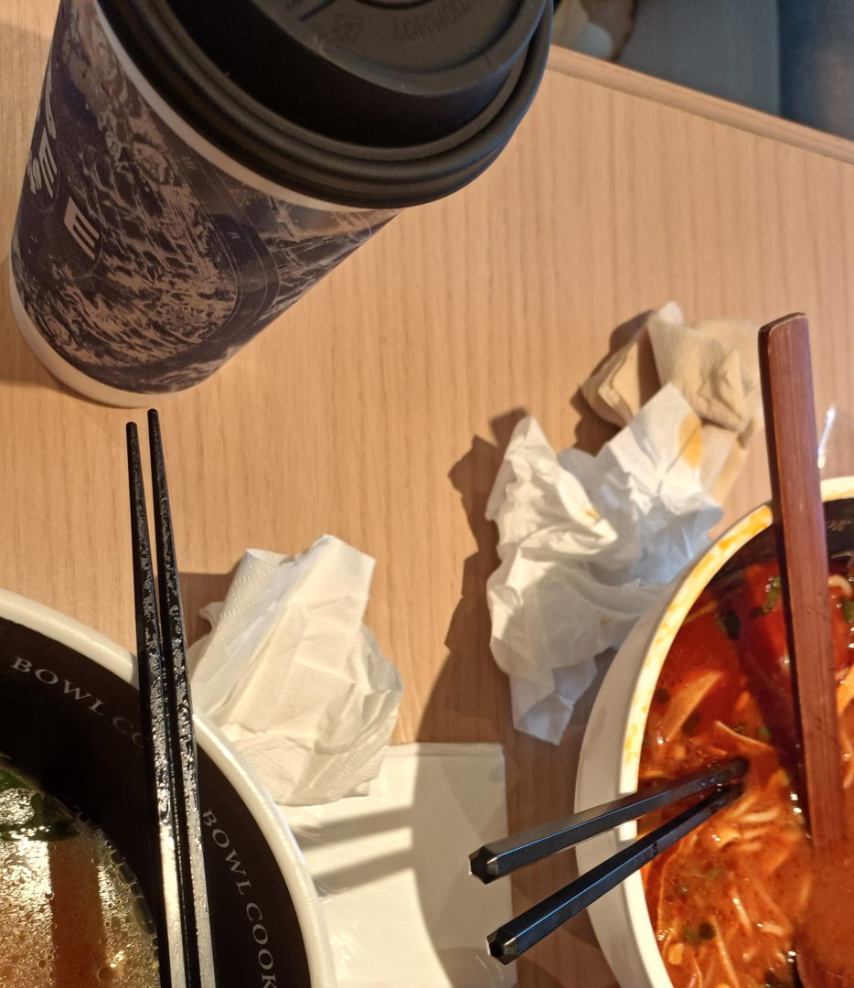 中午午饭吃米线,好吃,但为什么吃完一抬头别人碗里都是满的……?