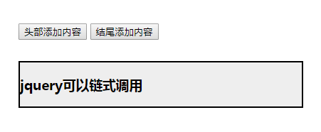 <button class="btn1">添加内容 </button><button class="btn2">添加内容 </button><div class="box"><h3>jquery可以链式调用</h3></div>
