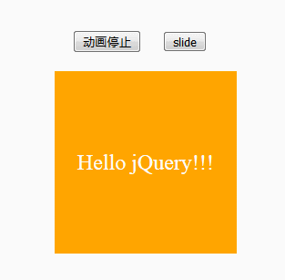 <button class="stop">动画停止</button><button class="slide">slide</button><div class="item">Hello jQuery!!!</div>