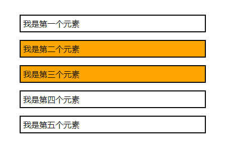 <div class="container"><p>我是第一个元素</p><p class="active">我是第二个元素</p><p class="active">我是第三个元素</p><p>我是第四个元素</p><p>我是第五个元素</p></div>