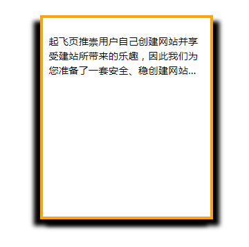 <div class="shadow"><p>起飞页推崇用户自己创建网站并享受建站所带来的乐趣,因此我们为您准备了一套安全、稳创建网站并享受建站创建网站并享受建站</p></div>