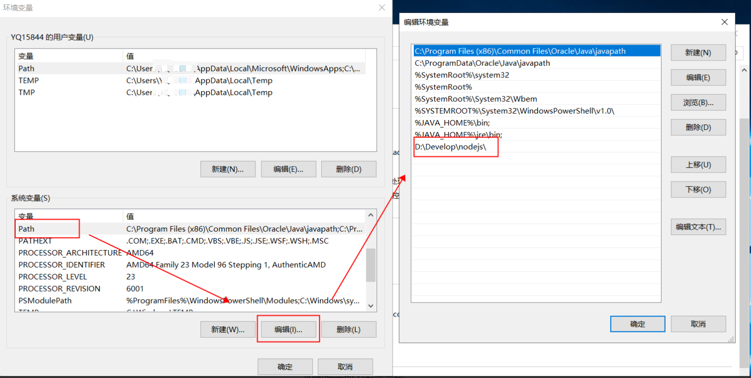 将【用户变量】下的【Path】修改为【D:\Develop\nodejs\node_global】