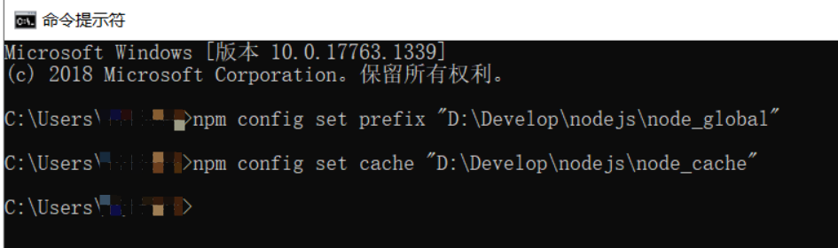 使用下面命令将npm的全局模块目录和缓存目录配置到我们刚才创建的那两个目录