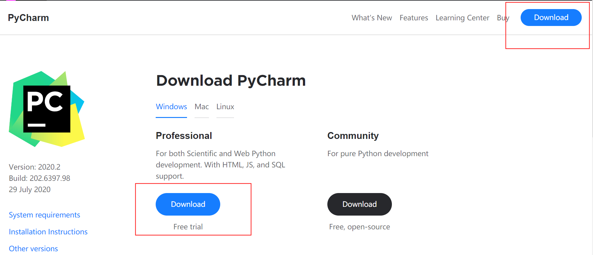 https://www.jetbrains.com/pycharm/download/#section=windows
