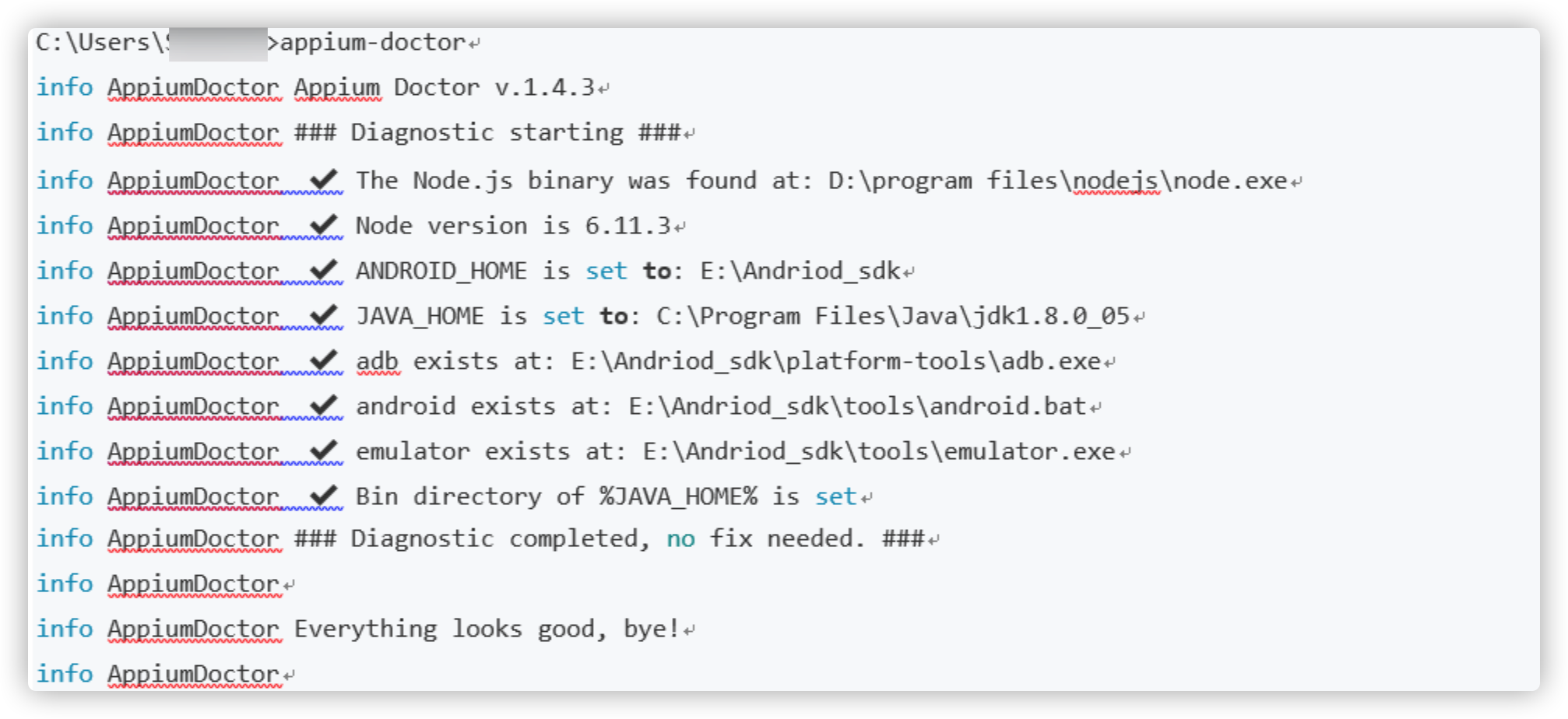 appium-doctor可以检测Appium整体依赖环境配置情况。
