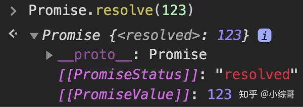 一个Promise实例包括一个status[[PromiseStatus]],以及一个value[[PromiseValue]]。在上述这个示例你可以看到[[PromiseStatus]]是pending,[[PromiseValue]]是undefined。