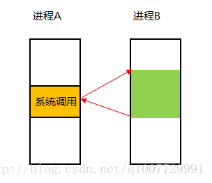 进程 B 运行到某个位置,也发生了和进程 A 一样的遭遇,也调用了某个系统调用而阻塞而切换到了进程 A