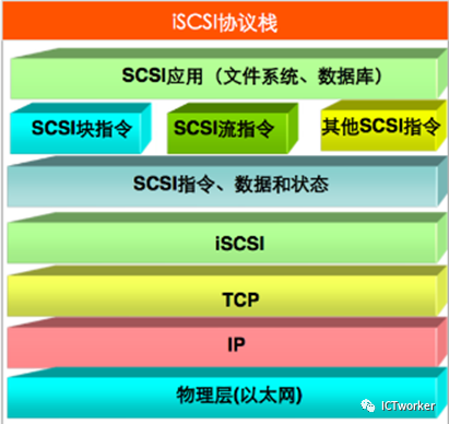 iSCSI协议位于TCP/IP协议和SCSI协议之间,可以起到连接这两种协议网络的作用。在物理层,iSCSI实现了对千兆以太网接口的支持,这使得所有支持iSCSI接口的系统都可以方便的直接连接到千兆以太网的路由器或者交换机上。iSCSI位于物理层和数据链路层之上,直接面向操作系统的标准SCSI命令集。