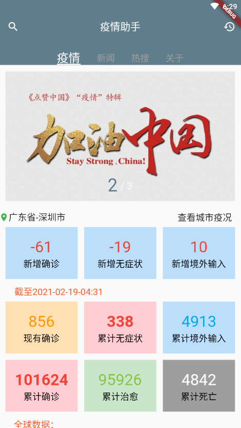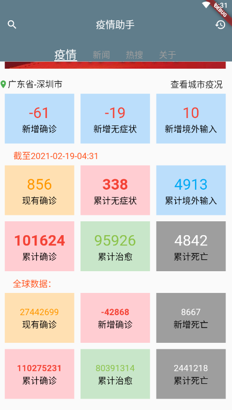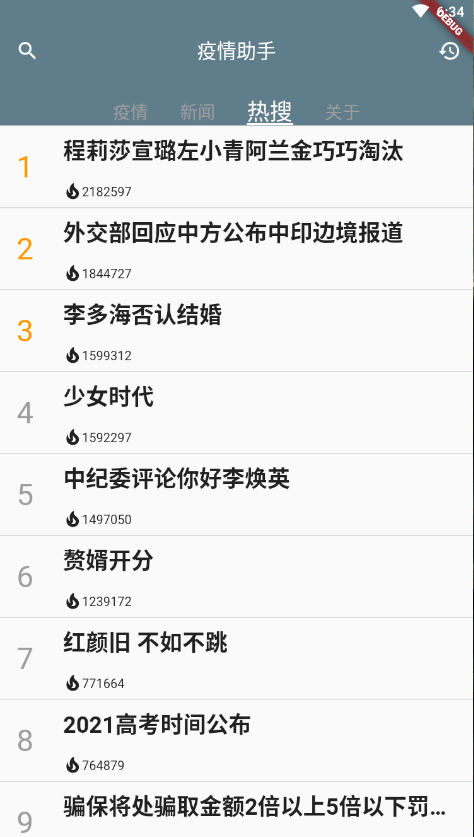 简介:一个能看国内国外疫情实时数据的APP,还可以查看最新新闻和热搜。