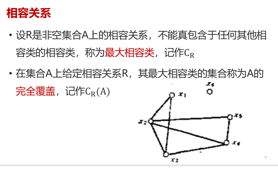 相容类:取A的一个子集C,使得C里面容易两个元素都有相容关系,则称C为相容类