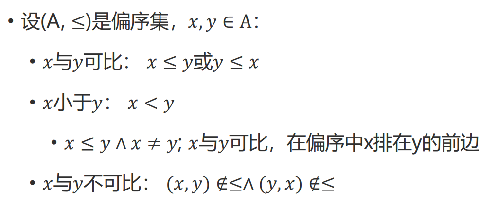 如果元素满足偏序关系,就称两个元素可比,可比才能排序