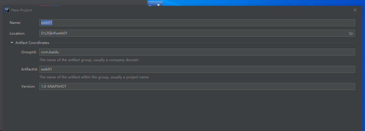 用IntelliJ IDEA创建maven其中第三步选择后缀webapp