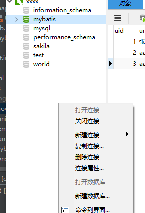右键空白处→新建数据库→数据库名user→字符集utf8→排序顺序utf8_general