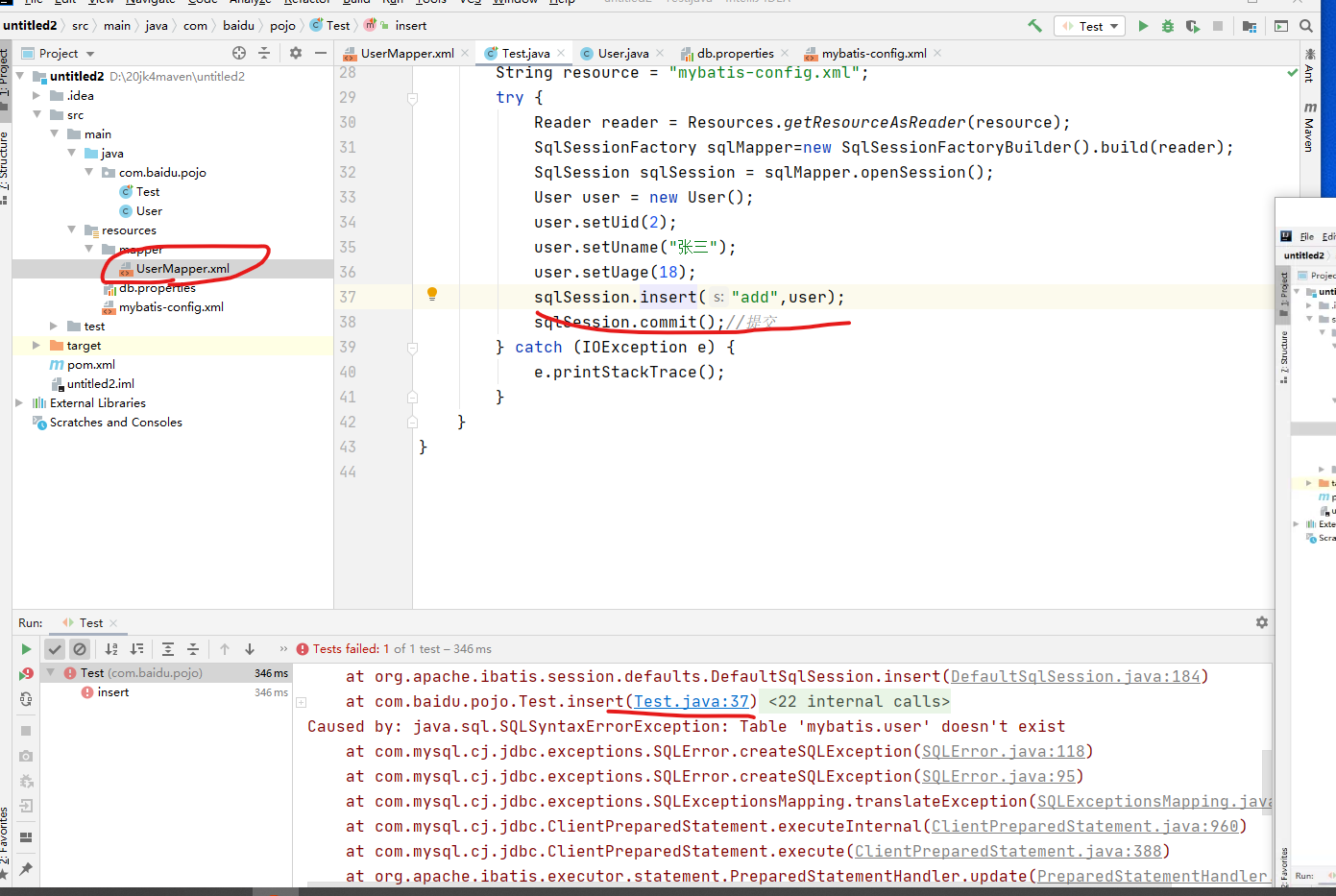 报错应该是Usermapper中查询语句错误