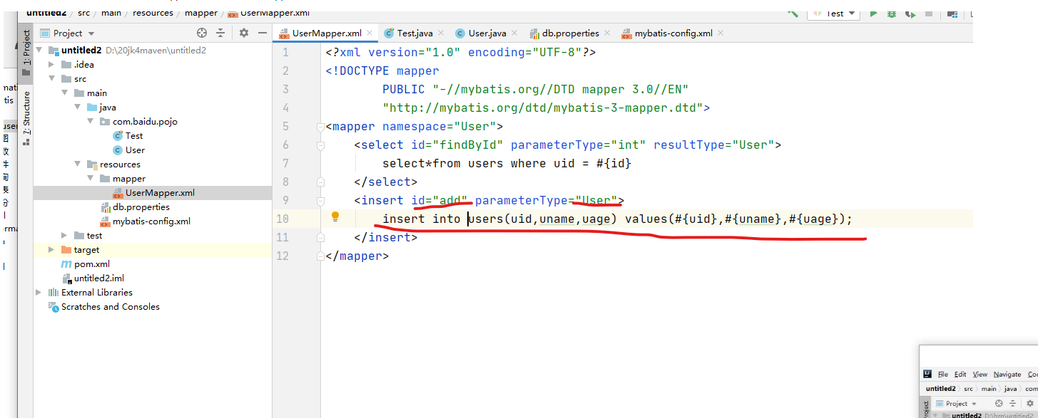 链接数据库之后的数据库语句放在mapper文件夹下的UserMapper中