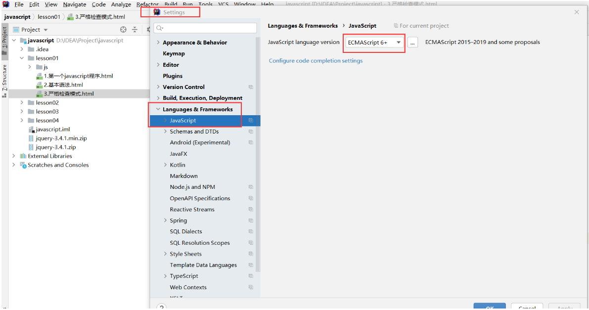 设置IDEA使支持ES6语法