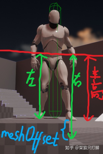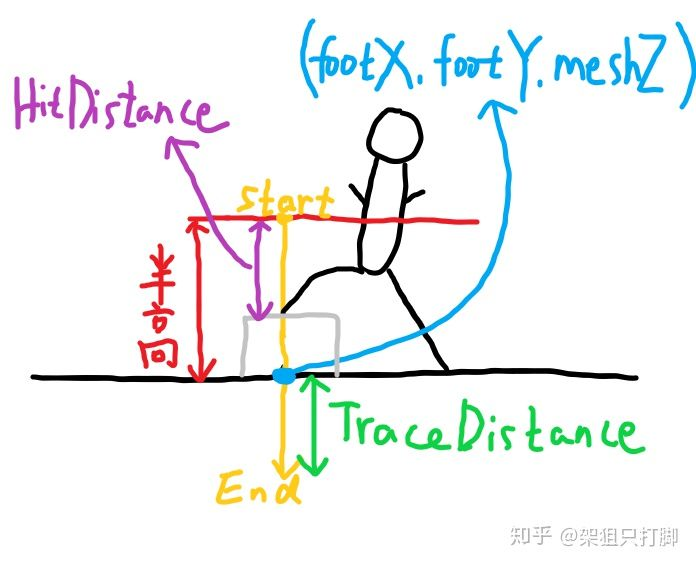 这里并不是如原作者所解释的因为碰撞框导致的,是本身我们的脚长度就那么长,而joint target本身就是在大腿处,所以往下伸出去的能力有限。