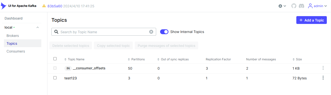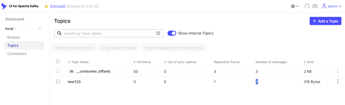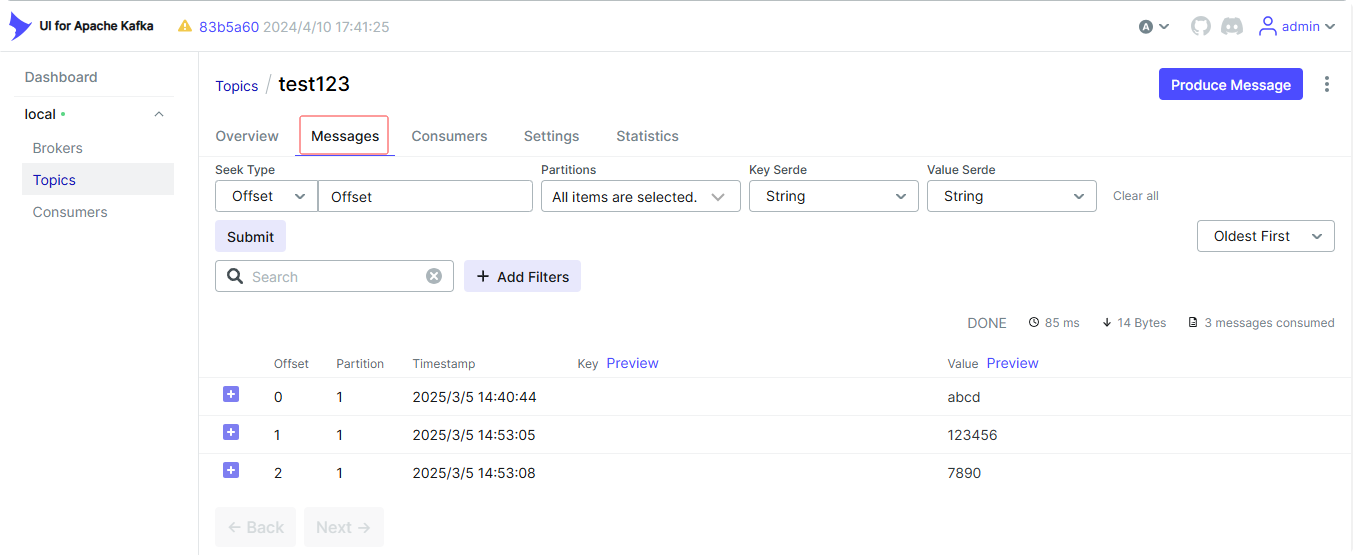 其中,定义了一个 kafka-ui 的管理工具容器,可以通过页面的方式对 topic 和 consumer 进行直观的管理和查看。