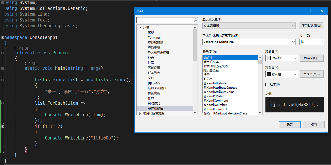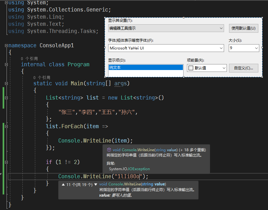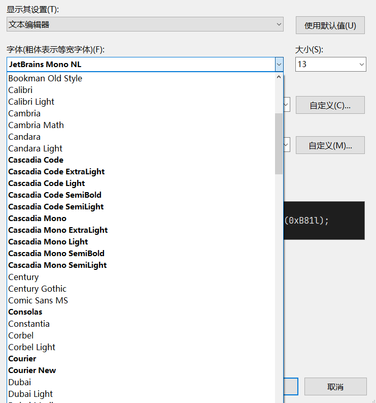 Visual Studio 字体设置