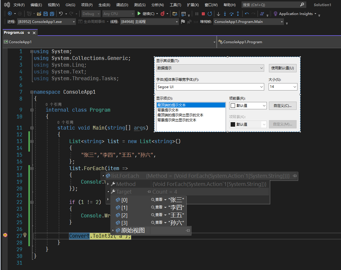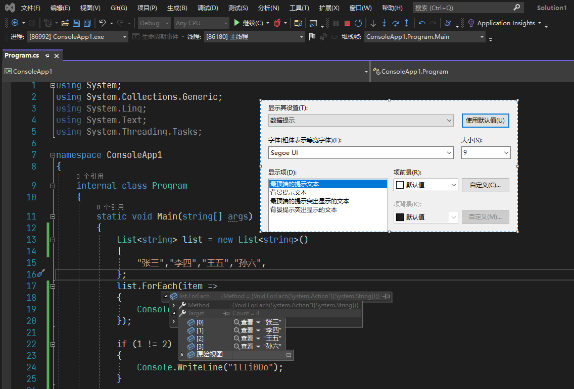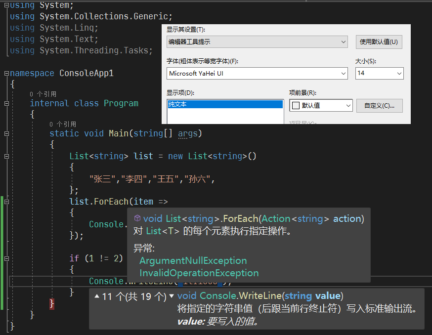 VS默认的字号都太小 建议加大字号 本文整理常用界面的字体字号的设置方式 并添加效果对比图供大家参考