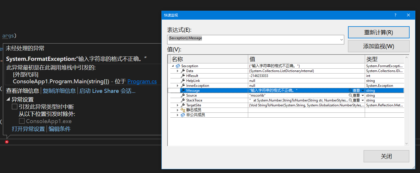 异常提示窗口