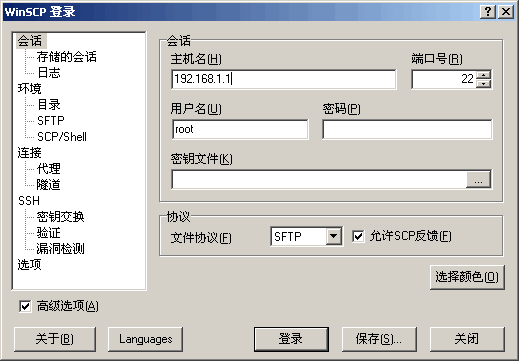 初次使用Lamp比较疑惑的是自己网页文件如何放到服务器上去,实际上那个SFTP就是了,这是安全的文件传输方式,我用的是WinSCP,在登录界面填写服务器地址、安装Turnkey-lamp时的管理员用户名、密码,点登录即可