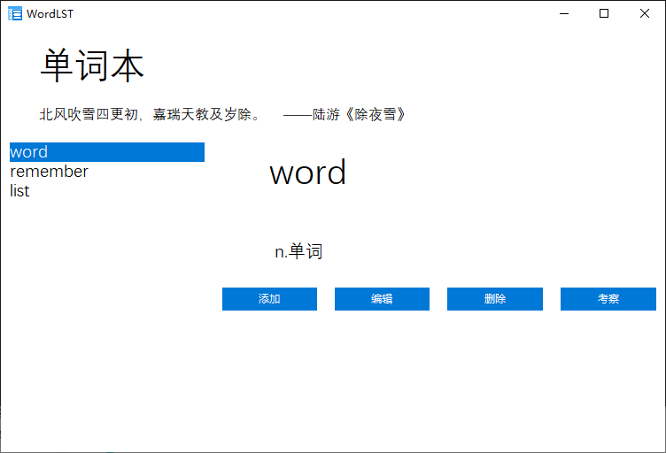 你只需要从左边的列表里选择一个单词,然后点击,这样就可以看到这个单词的英文、中文、词性了。
