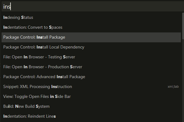 安装完成后可以通过ctrl+shift+p打开Package Control安装插件,输入框中输入install,选择 Install Package,然后搜索自己想要的插件,Enter安装