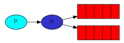 topic:主题交换器,工作方式类似于组播,ExChange 会将消息转发和 ROUTING_KEY 匹配模式相同的所有队列(key 可以用“宽字符”模糊匹配 queue),比如,ROUTING_KEY 为