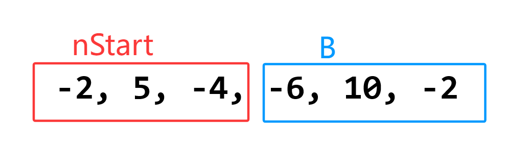 这是一个非常基础的小算法,主要思想是使用一个中间量nStart来计算当前子数组的和。其中有点贪心算法的影子,当nStart小于0时,直接将其“抛弃”(置为0),因为就算该子数组的后面有一个大于0的数组B: