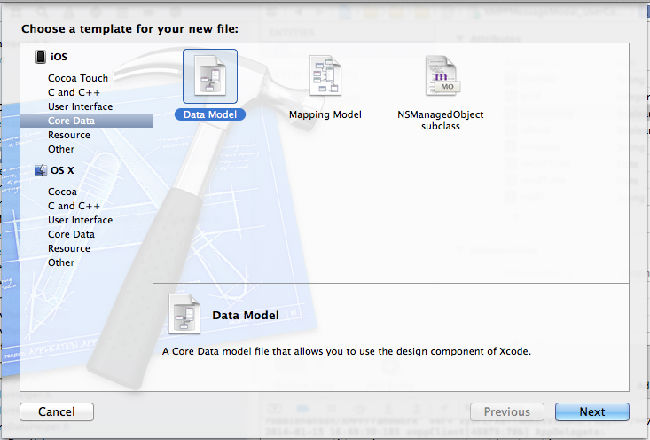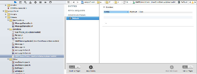 note: 添加了新的 Data Modal 和 NSManagedObject 后, 最好把原先模拟器上的程序移除再安装。