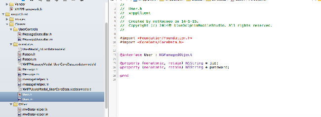 #import <Foundation/Foundation.h> #import <CoreData/CoreData.h> #import "User.h" @interface userCoreDataHelper : NSObject{ NSManagedObjectContext *managedObjectContext; NSManagedObjectModel *managedObjectModel; NSPersistentStoreCoordinator *persistentStoreCoordinator; } // 保存信息 - (BOOL)saveMessageWithjid:(NSString *)jid password:(NSString *)password; // 获取信息 - (NSArray *)getAllUsers; @end
