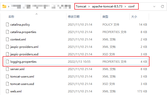 1. 进入Tomcat目录下的conf文件夹,打开logging.properties