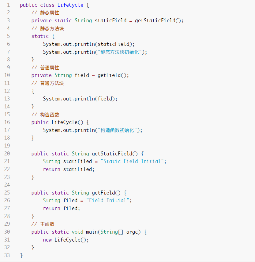 - 构造方法(也叫构造函数或构造器):构造方法只能在对象创建的时候调用一次,构造方法和类的名字应该保持一致,且没有参数类型和返回值。如果类中没有构造方法,JVM会自动生成一个无参的构造方法。
