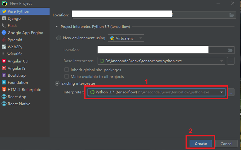 打开“Pycharm”,选择“New Project”后: