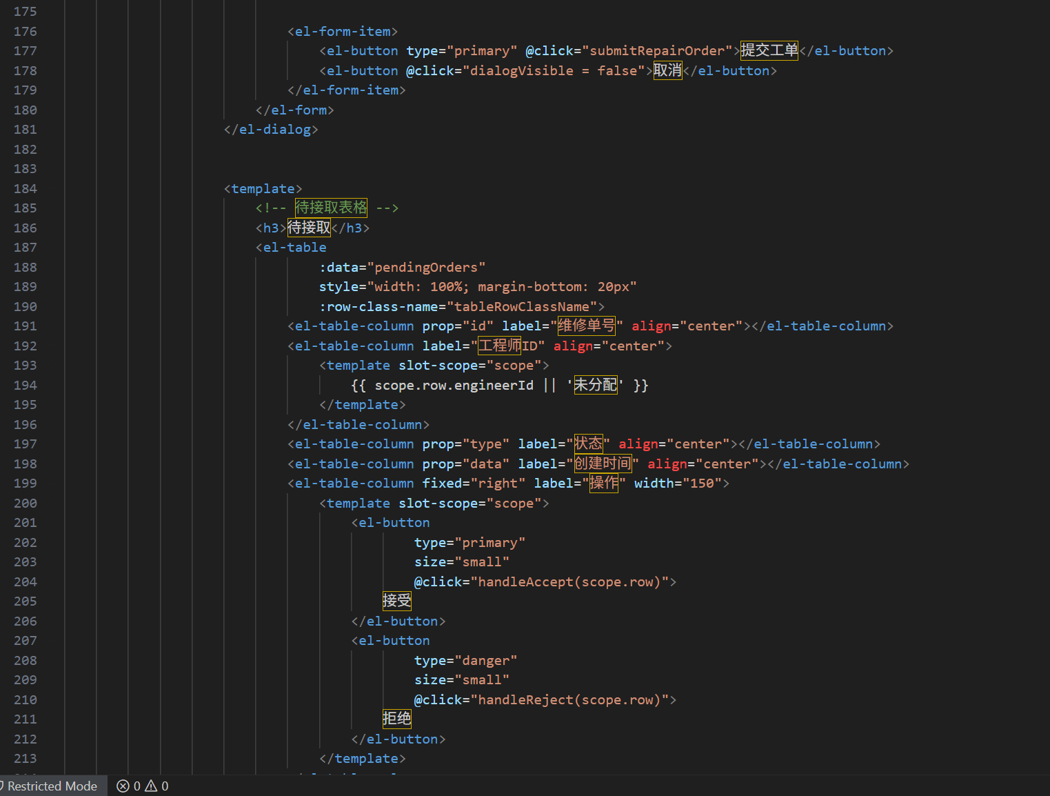 4月21日:主要编写前端页面,登录、报修、维修、各类工单页面,并新加侧边栏。 会议图片如下: 任务看板如下: 燃尽图如下: 代码截图如下: