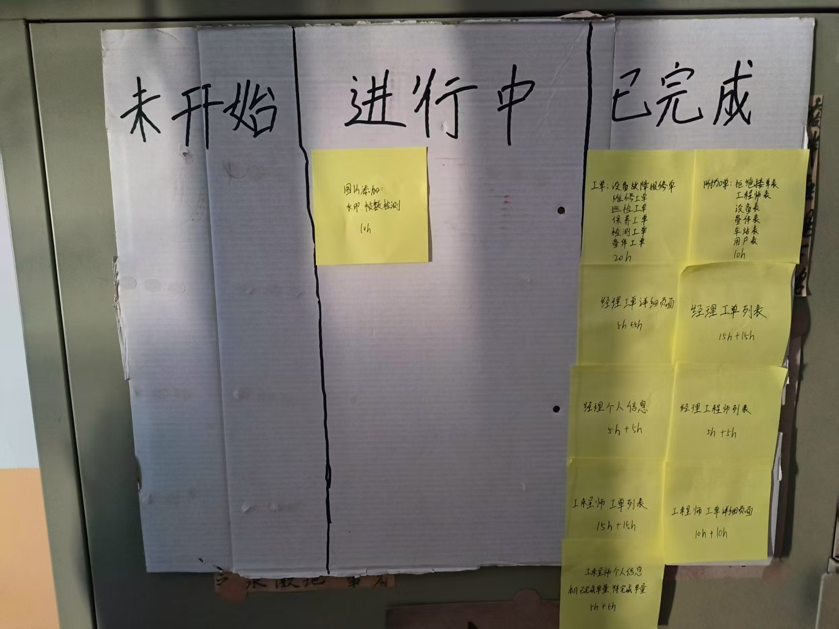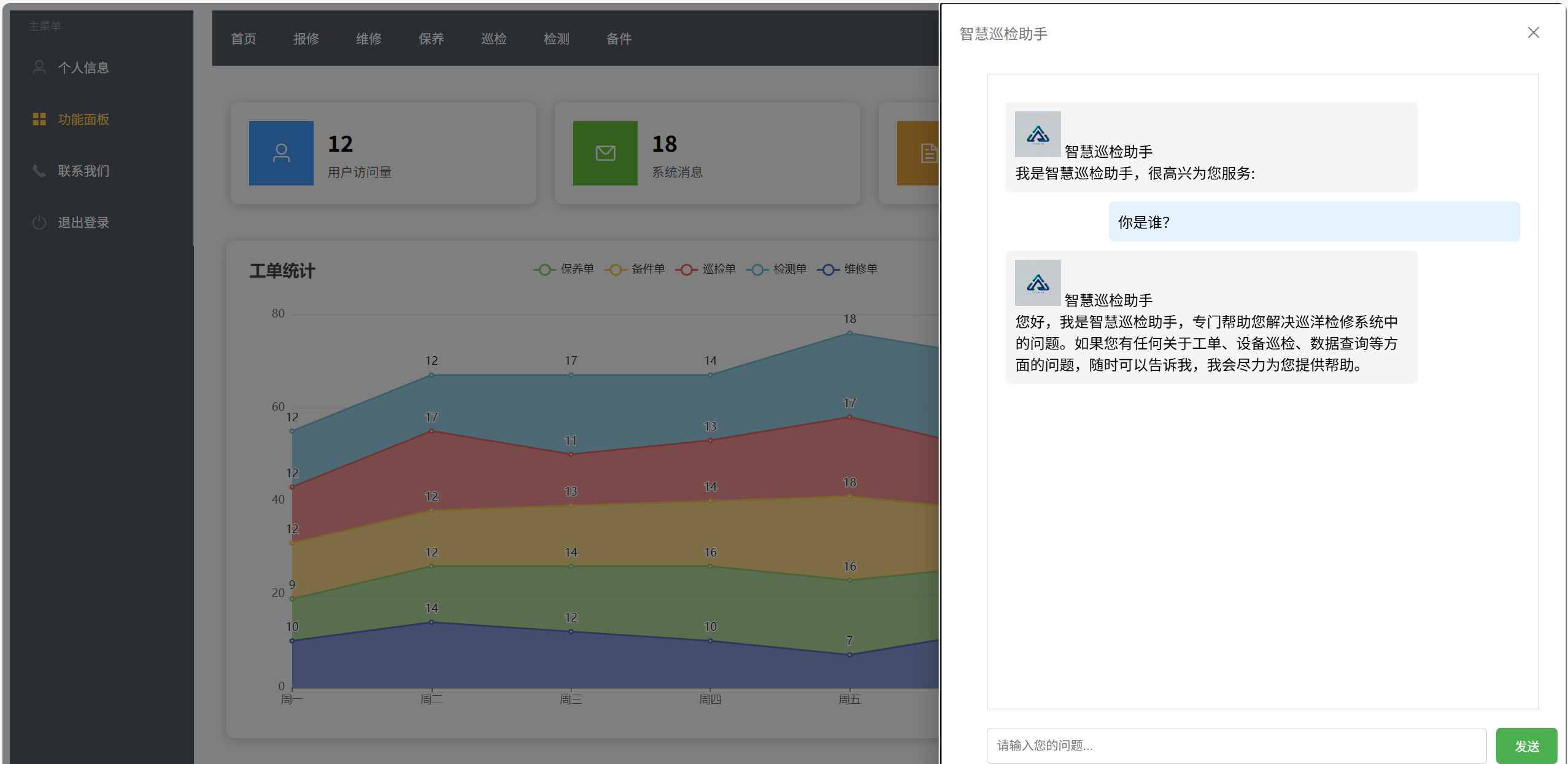 4月28日:添加“联系我们”界面,设置消息界面,对于工程师未及时进行维修的项目进行超时提醒,添加AI助手,与数据库信息连接,可以回答与工单有关的信息。 会议图片如下: 任务看板如下: 燃尽图如下: 代码截图如下: