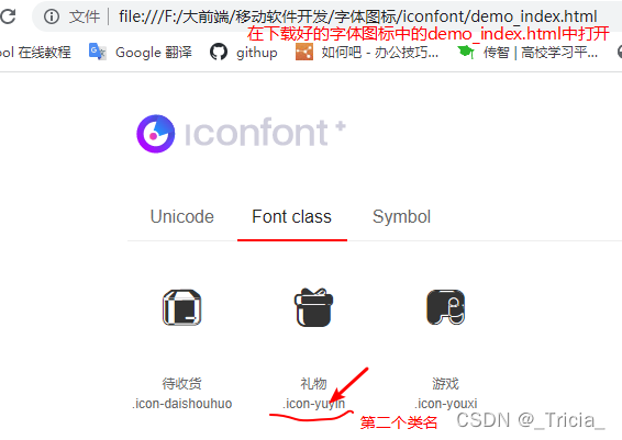 通过两个类名( iconfont 要引入的字体图标类名)来展示想要的字体图标