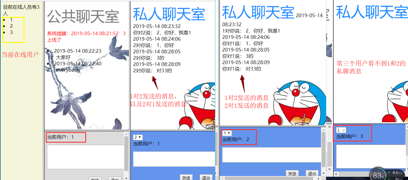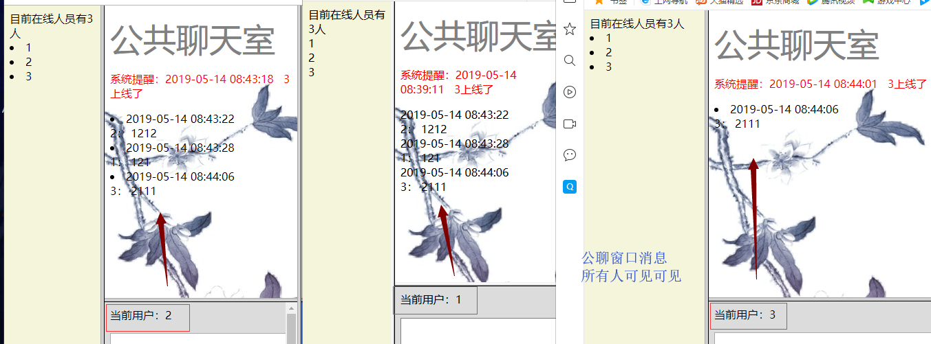 口中看到随时更新的聊天信息。用户可以给所有人或某一个聊天用户发送公共的聊天信息,这个聊天内容