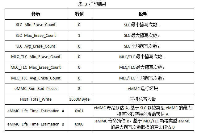 (2)eMMC Run Bad Pieces:3,即运行过程中产生的3个坏块数。