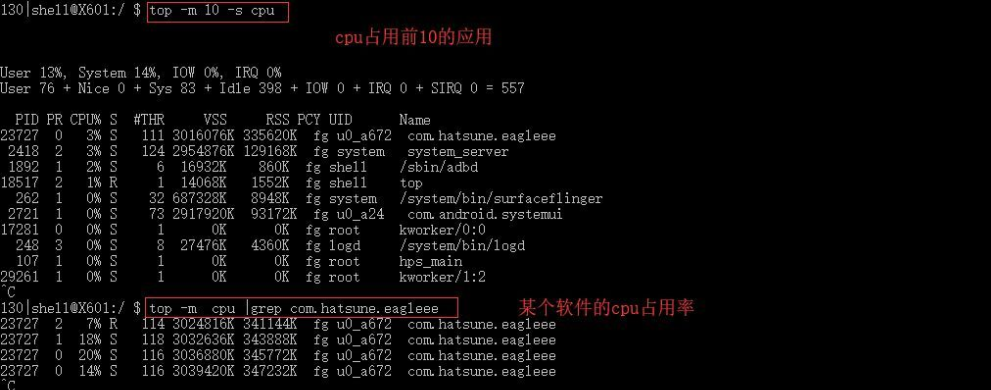 adb命令:top -m -s cpu |grep com.netease.cloudmusic
